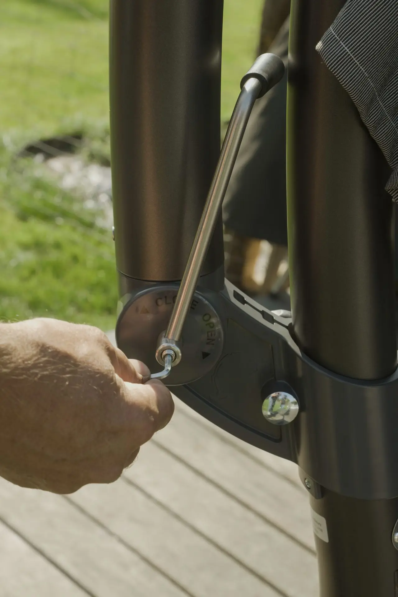- De parasol is 360° draaibaar, draai hem eenvoudig met de bevestigingsknop, die voorkomt dat de parasol ongewenst uit zichzelf draait
