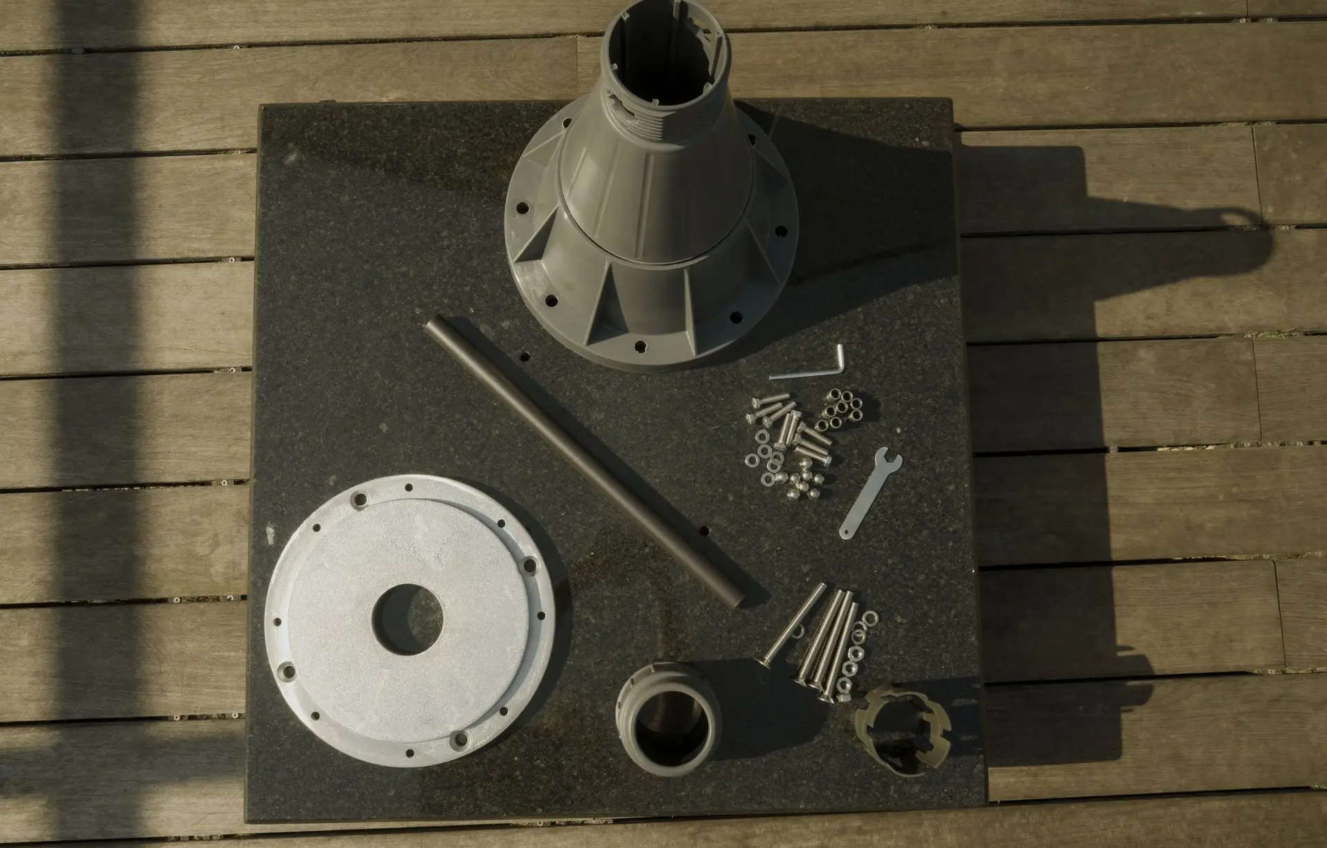 de standaard ronde parasolvoet is er optioneel ook een granieten parasolvoet