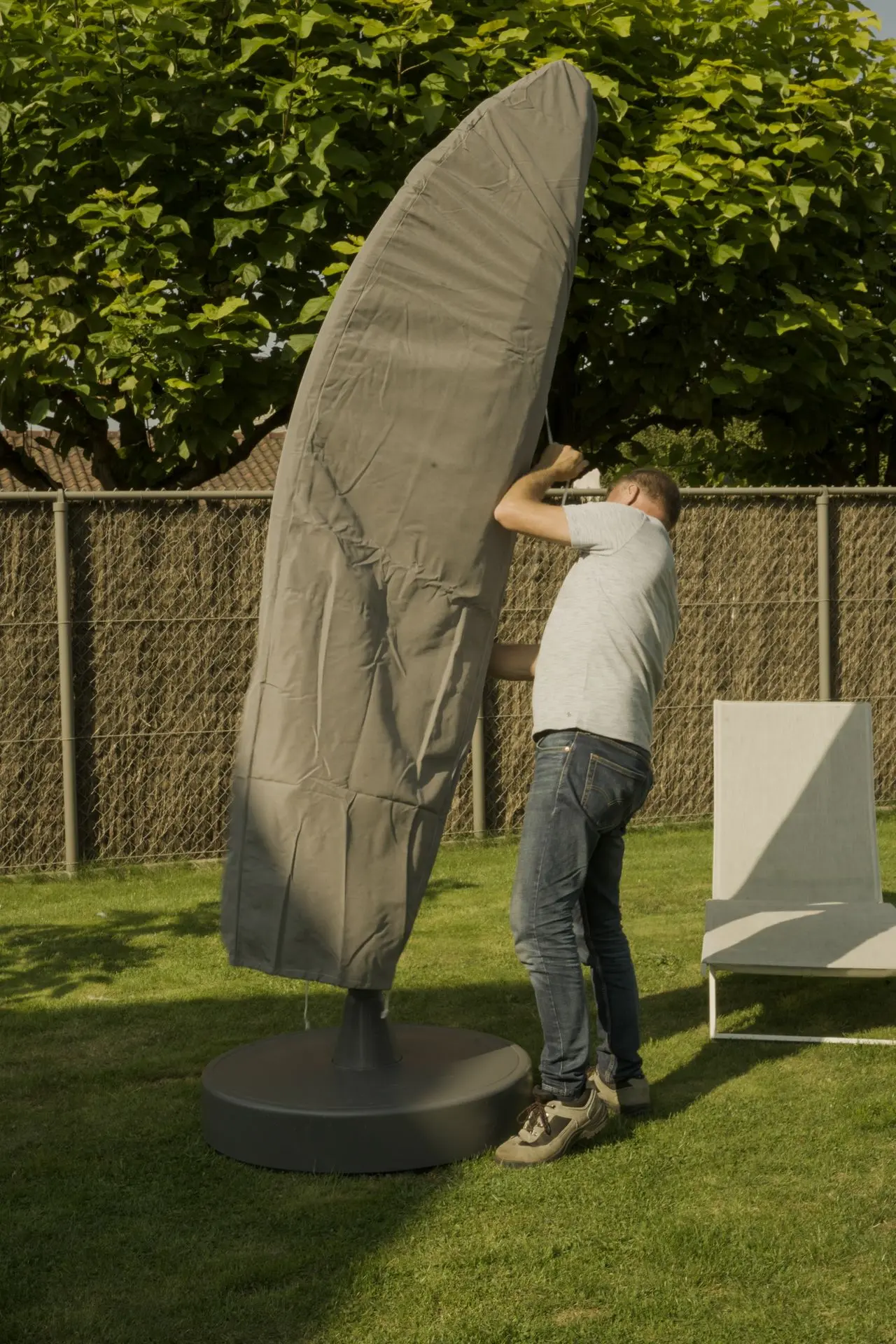 - Gebruik een zomerhoes om de parasol te beschermen tegen vocht en vuil