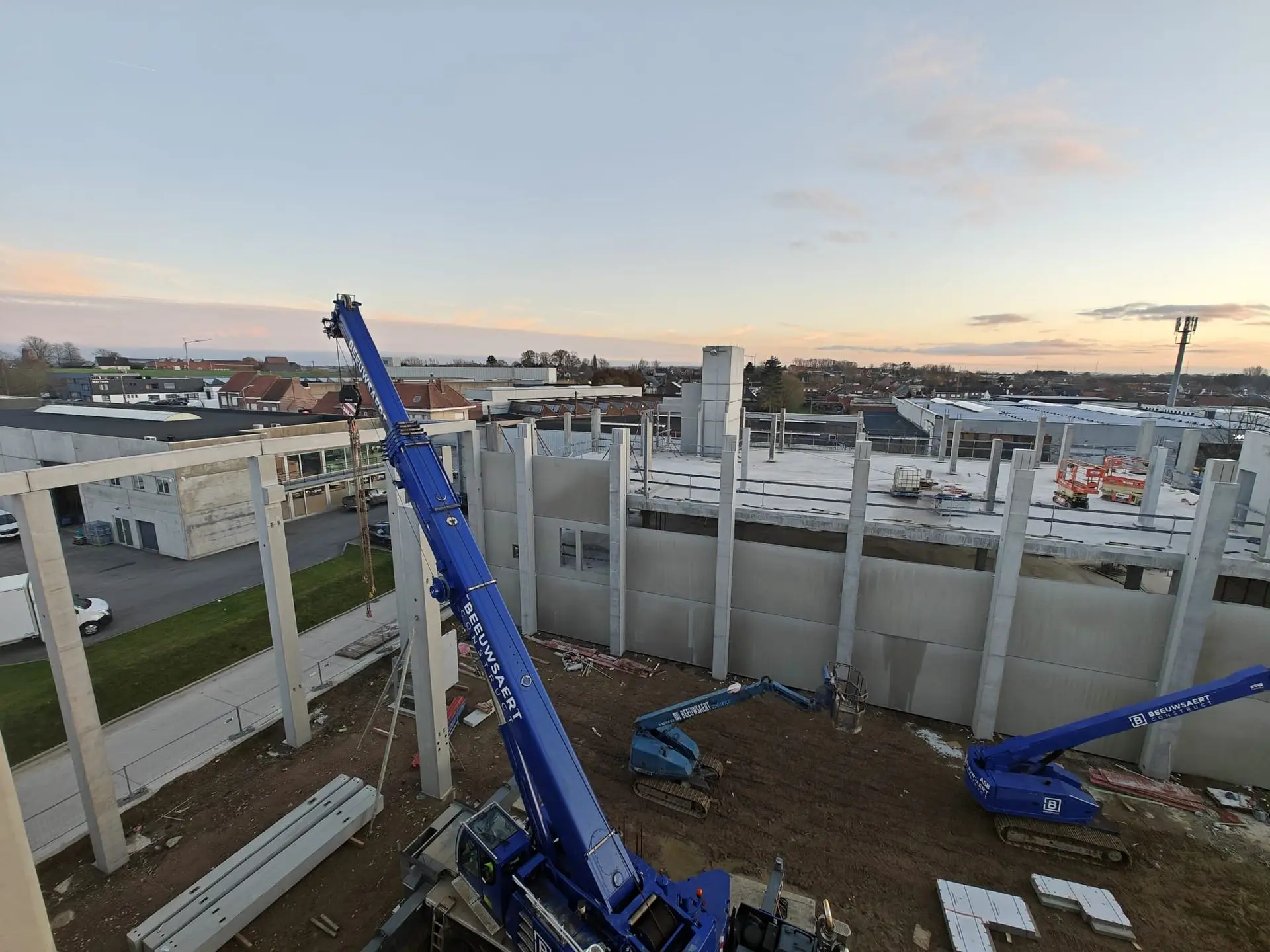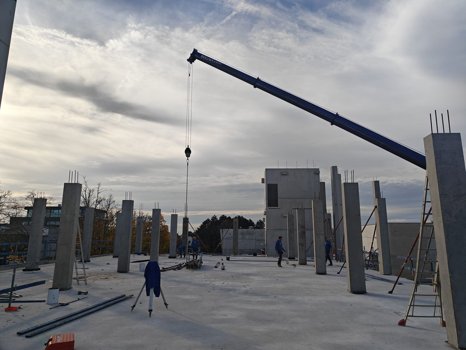 De werken lopen volledig op schema om eind 2026 onze intrek te nemen. We verwachten dat de ruwbouw eind februari wordt afgerond, daarna volgen de technieken: elektriciteit, ventilatie, verwarming, koeling, brandbeveiliging, enzovoort. Tot slot gaan we over tot de inrichting: vloeren, binnenwanden, meubilair, …