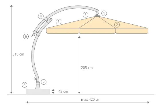 3 verschillende canvasvormen, een tiental aantrekkelijke eigenschappen voor uw zweefparasol