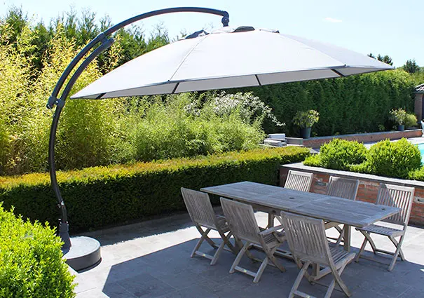 Om zich steeds aan te passen aan de positie van de zon kunnen al onze kwaliteitsvolle parasols 360° draaien en zijn ze tot 45° kantelbaar.